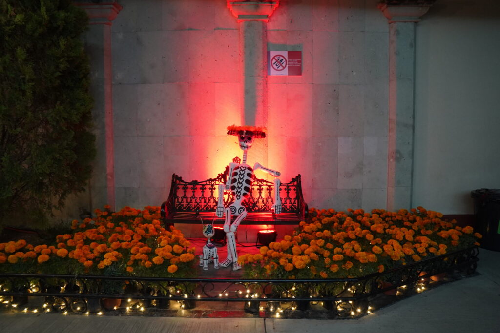 すでに死者の日の飾り付けがされている。