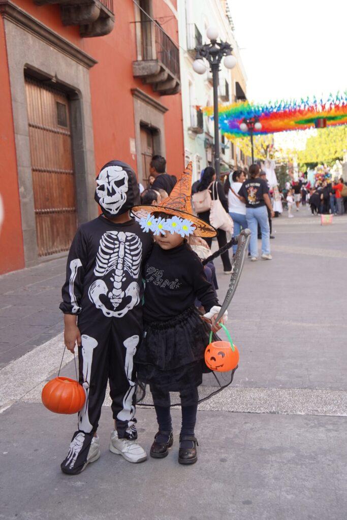 仮装、死者の日メイクの人達が、目に見えて増えてくる。