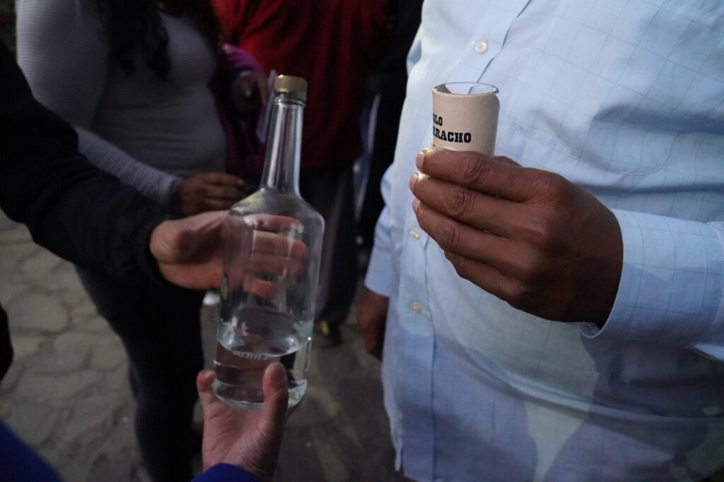 前にいたメキシコのおじさんの、ウォッカ芸を見る。