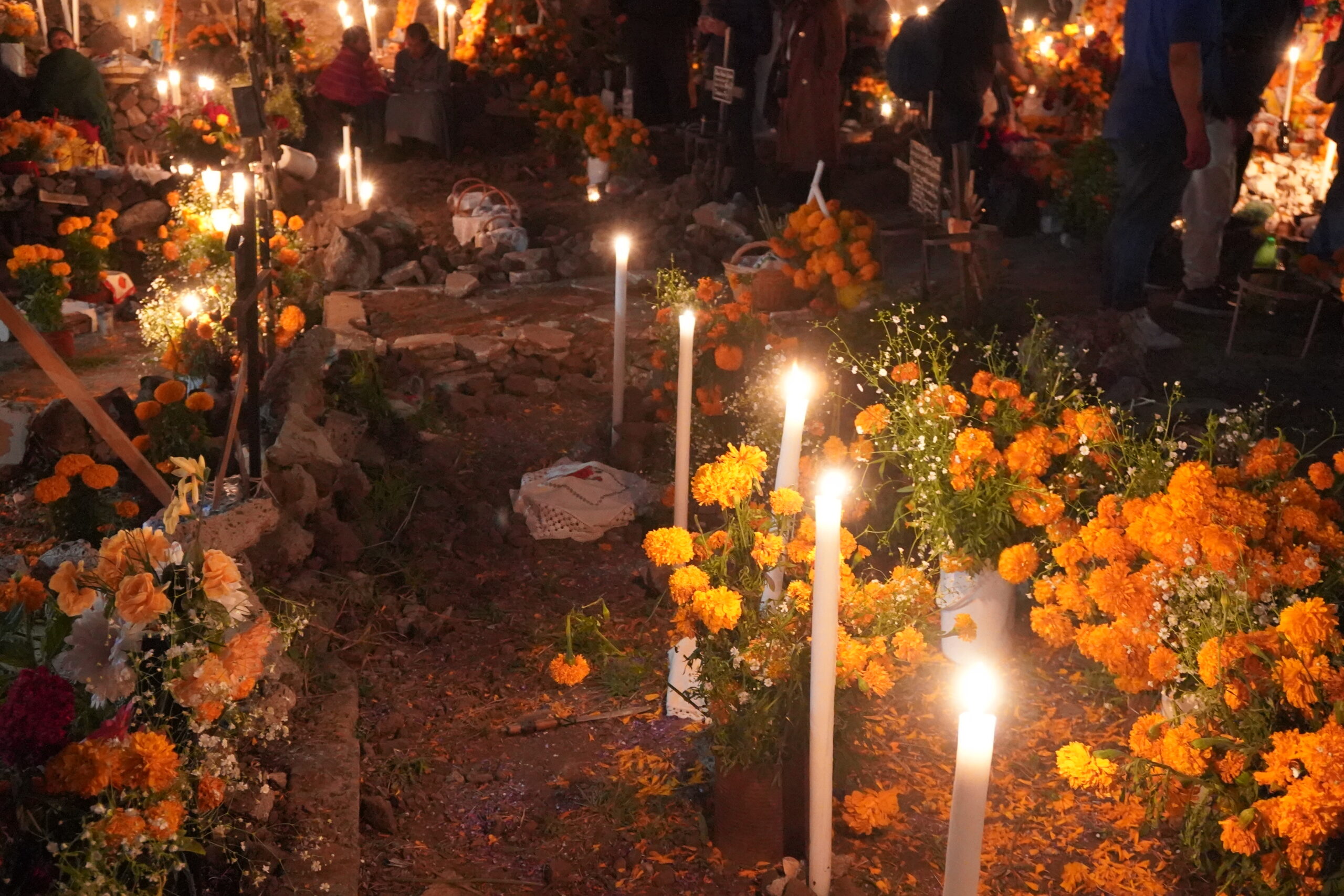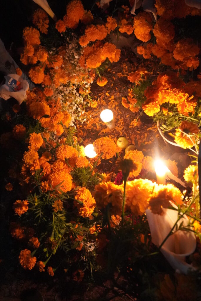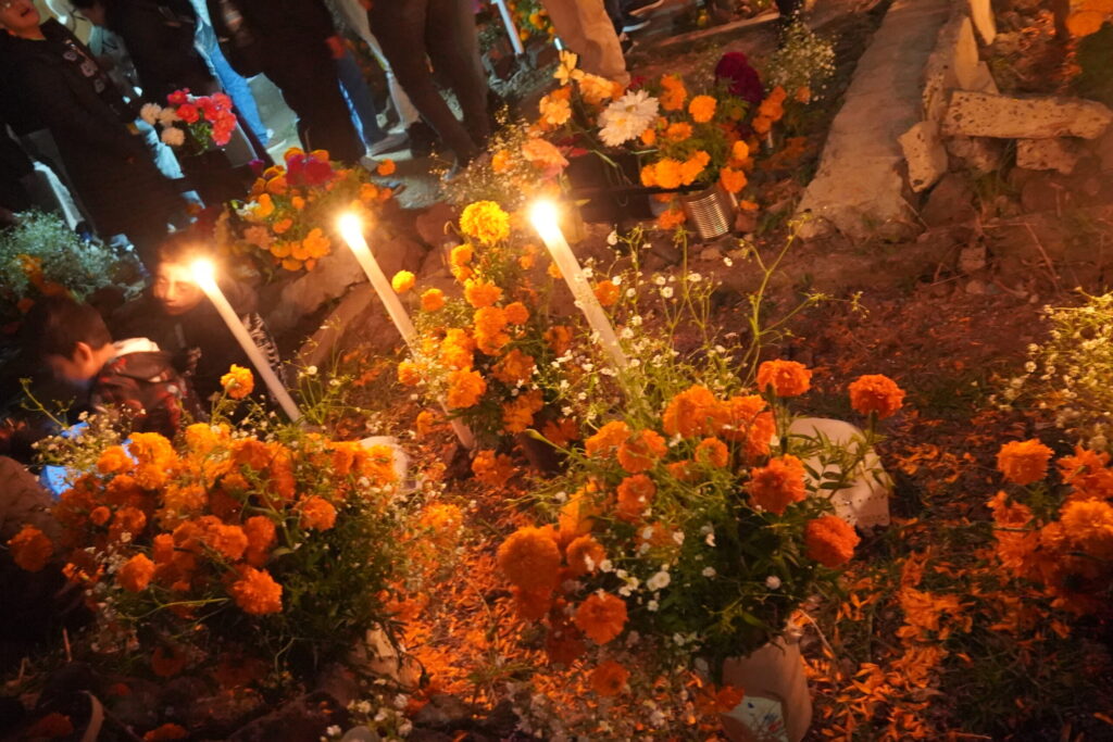 マリーゴールドとろうそくの灯りで死者を迎え、